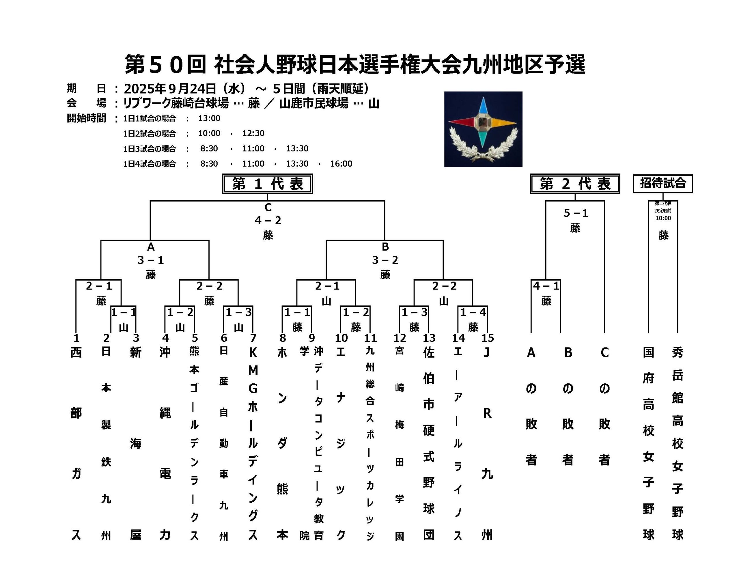 第50回社会人野球日本選手権 九州地区予選の組み合わせが決定しましたのでお知らせいたします。