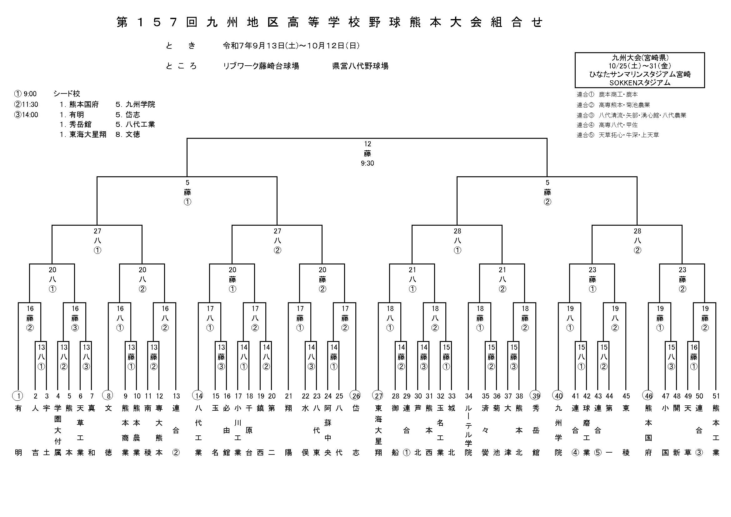 9月13日(土)より第157回九州地区高等学校野球熊本大会が開催されます。優勝、準優勝校は宮崎県にて開催される九州大会に出場、春の選抜甲子園大会を目指して戦います。