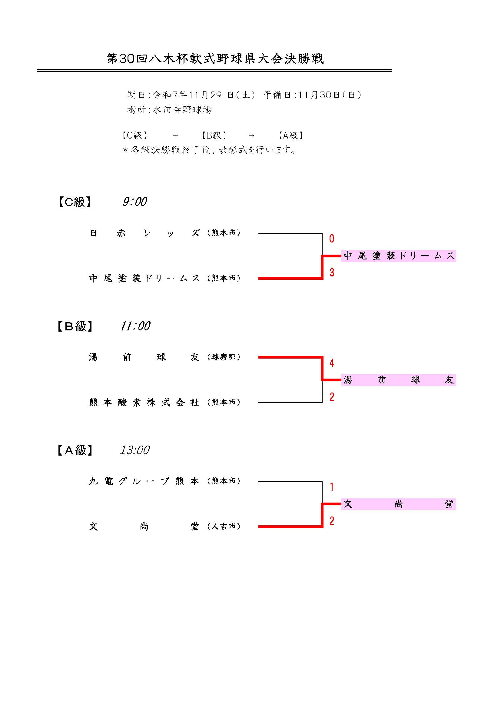 Aクラスは文尚堂が九電グループ熊本を2-1で破り優勝